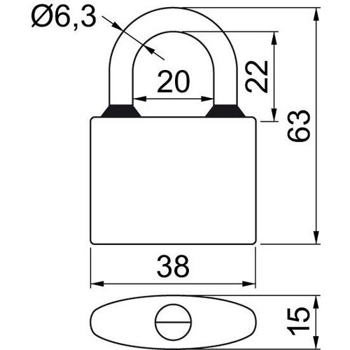 Set 3 ks visacích zámku na společný uzávěr SU, průměr třmene 6,3 mm, výška 22 mm