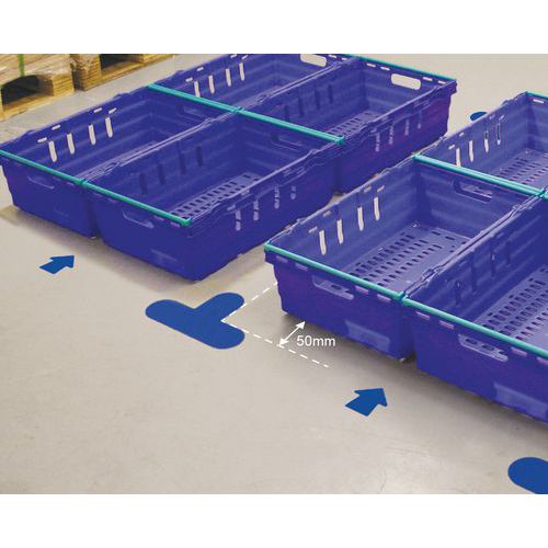 - Značení ve třech barevných variantách ve tvaru T je vyrobeno z polyvinylchloridu a opatřeno silným lepidlem s protiskluzovou vrstvou.