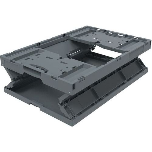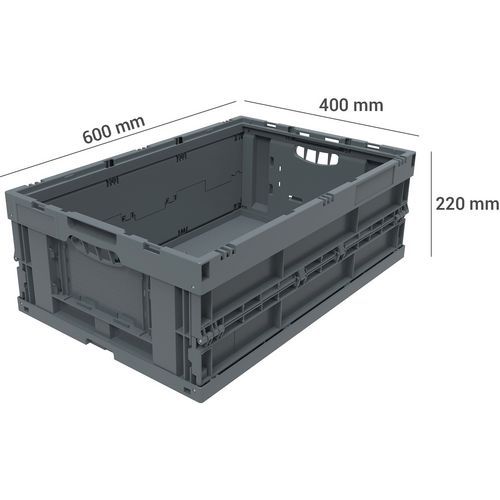 - Robustní skládací přepravky z recyklovaného polypropylenu s ergonomickými polootevřenými rukojeťmi.