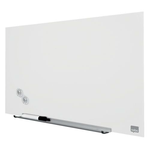 - Skleněné popisovatelné tabulu Nobo Diamond s odnímatelnou přihrádkou na popisovače.
