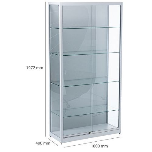 Skleněná produktová vitrína Manutan Expert, 197,2 x 100 x 40 cm, stříbrná