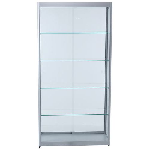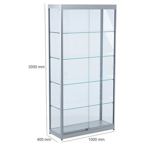 Skleněná produktová vitrína Manutan Expert, 200 x 100 x 40 cm, stříbrná