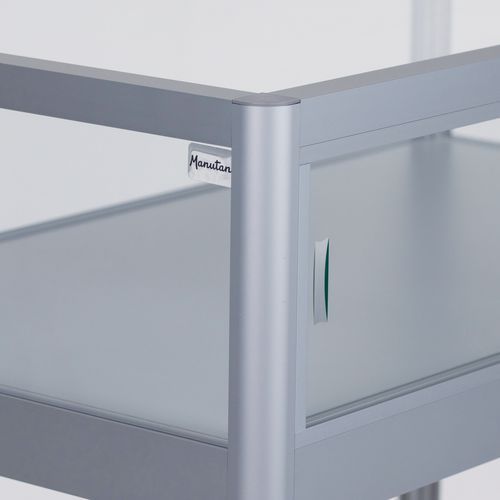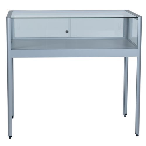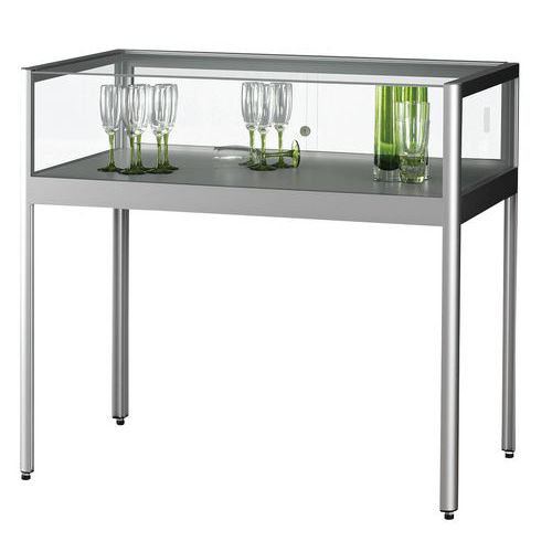 Skleněná stolová vitrína Manutan Expert, 100 x 60 x 92 cm, stříbrná