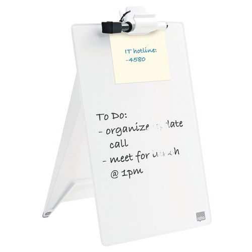 - Na tvrzený skleněný povrch si také lze připevnit poznámky nebo použít klip k vystavení dokumentů.