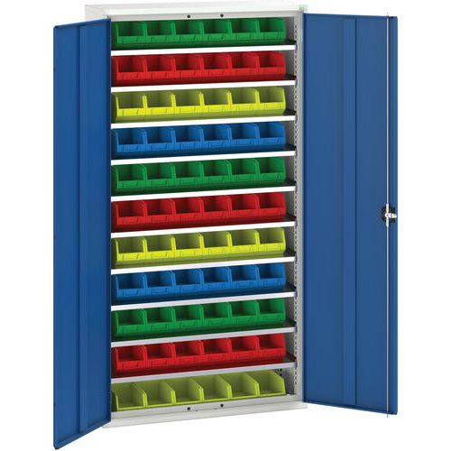 Skříň Bott Verso s boxy, 200 x 105 x 35 cm, 10 polic, 66 boxů, šedá-modrá