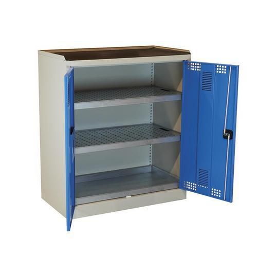 Skříň na uskladnění kapalin, 1180 x 950 x 500 mm, šedá/modrá