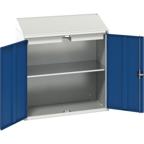 Skříň s šikmým pultem Bott Verso Economy, 113 x 105 x 55 cm, 2 police, 1 zásuvka, šedá-modrá