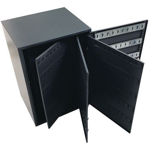 - Velkokapacitní kovová schránka v hranatém provedení pro uschování 500 klíčů.