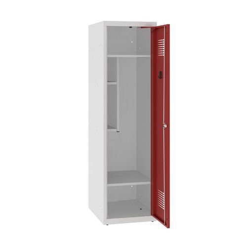 Snížená školní šatní skříň, 1 sloupec, 400 mm, šedá/červená, cylindrický zámek