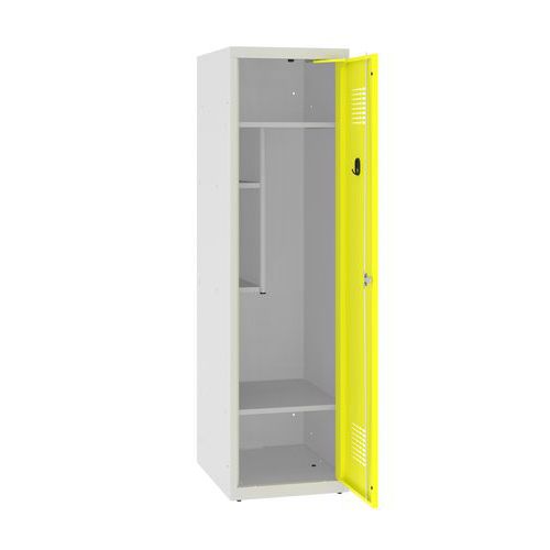 Snížená školní šatní skříň, 1 sloupec, 400 mm, šedá/žlutá, cylindrický zámek