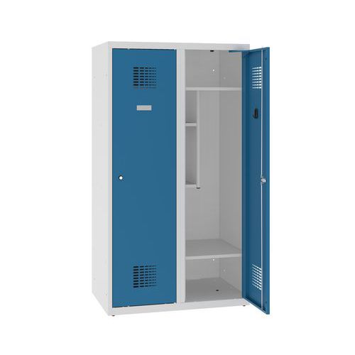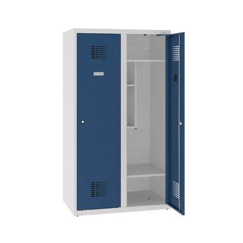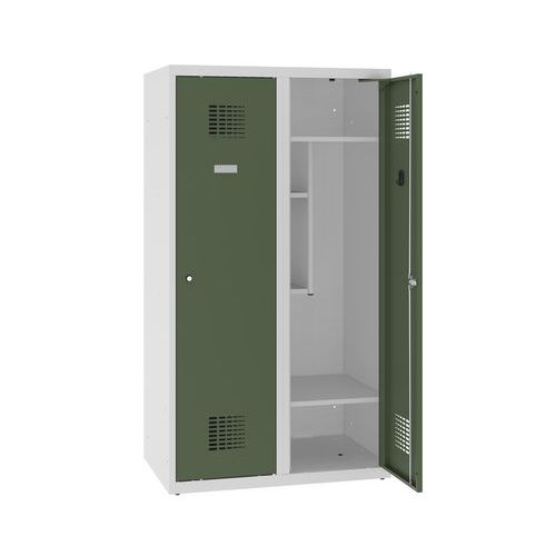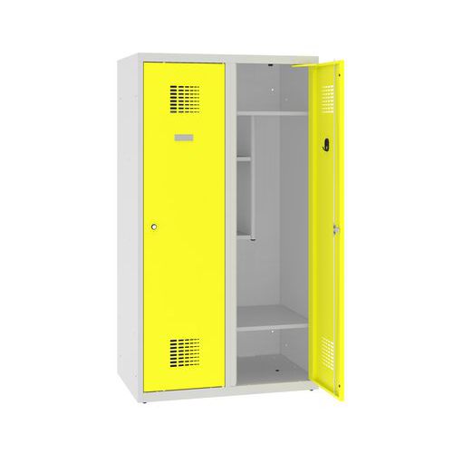 Dvouoddílové šatní skříně se sníženou výškou. Vhodné do škol pro žáky prvního stupně.