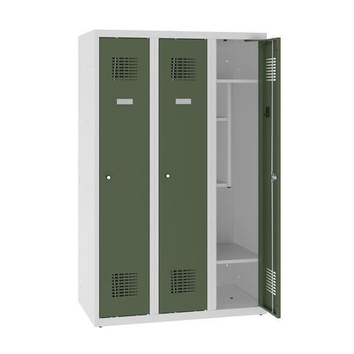Třídveřové svařované šatní kovové skříně.