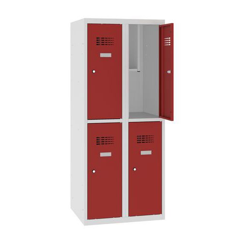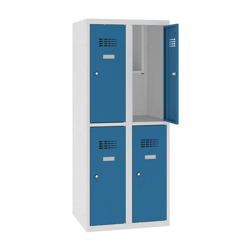 Svařované šatní skříně se čtyřmi oddíly vhodné do škol.