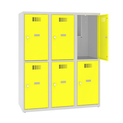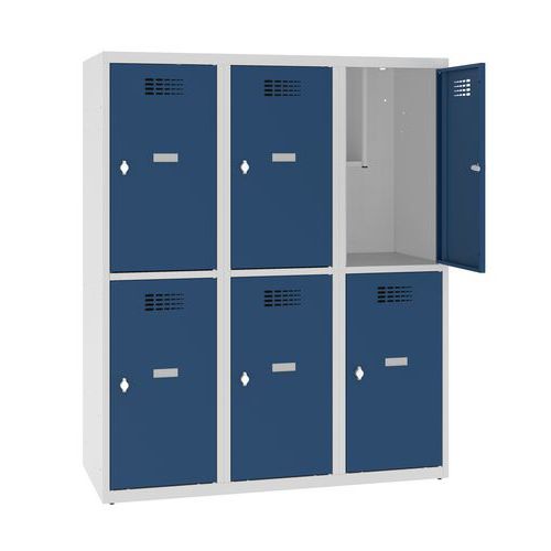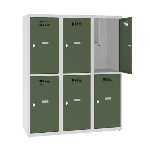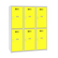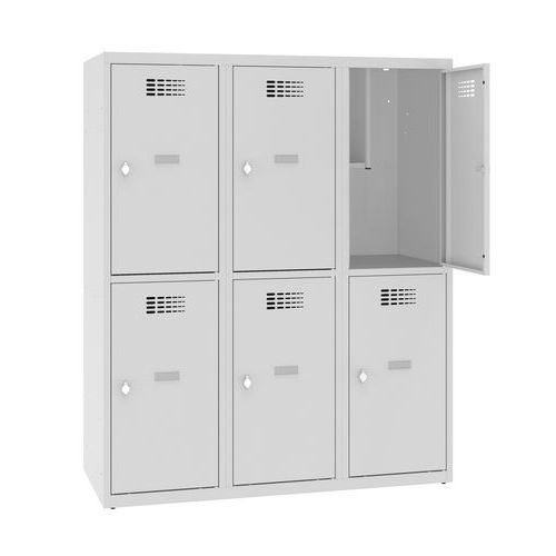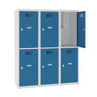 Snížené svařované šatní skříně se šesti samostatně uzamykatelnými oddíly.
