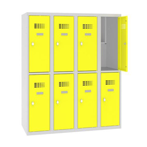 Snížené svařované šatní skříně s osmi samostatně uzavíratelnými boxy.