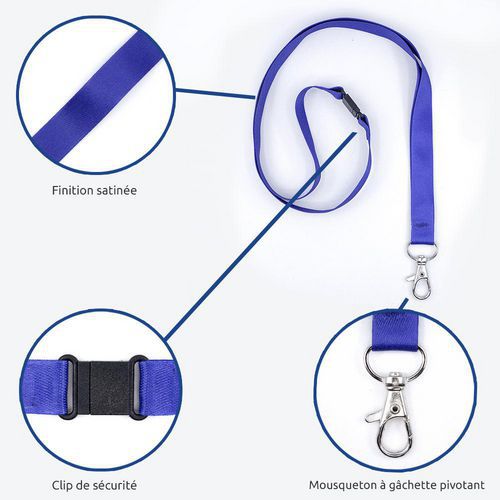 Šňůrky na krk s karabinou Avery, 10 ks, modrá