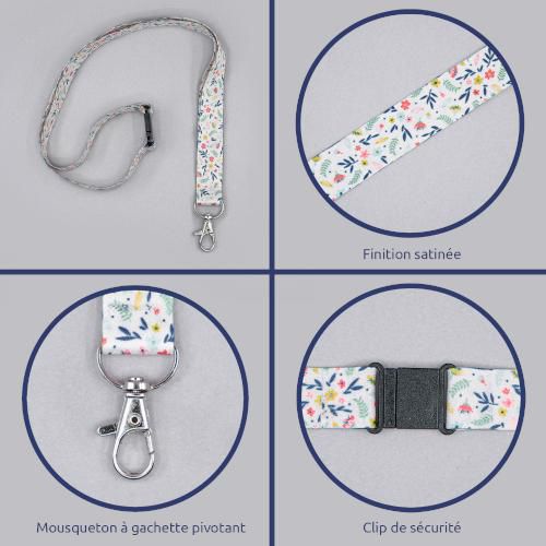 Šňůrka na krk s karabinou Avery Motif, 10 ks, květiny