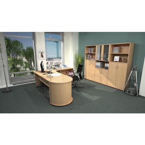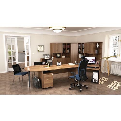 - Spojovací desky kancelářských stolů v levém provedení ve tvaru čtvrtkruhu. Tři barevné varianty. Osazení ABS hranami.