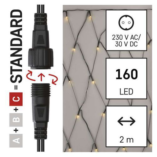 Standard LED spojovací vánoční řetěz - síť, 1,5x2 m, venkovní, teplá bílá