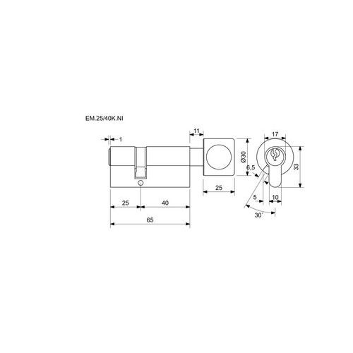 Stavební vložka EuroMinus s kouli, 25/K40 mm, nikl