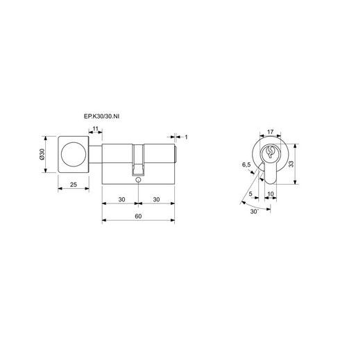 Stavební vložka EuroPlus s kouli, K30/30 mm, nikl
