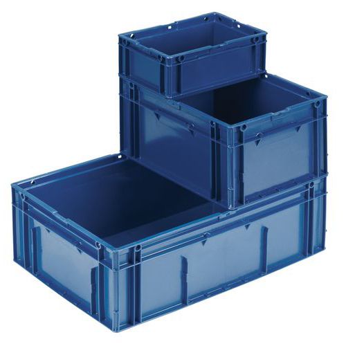 - Stohovatelné polypropylenové přepravky s plným dnem i stěnami jsou kompatibilní s euro paletami.