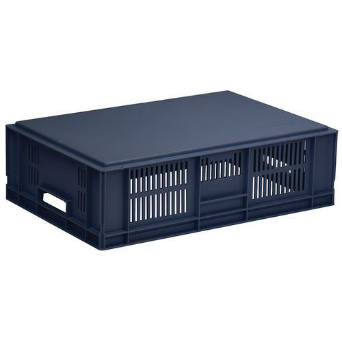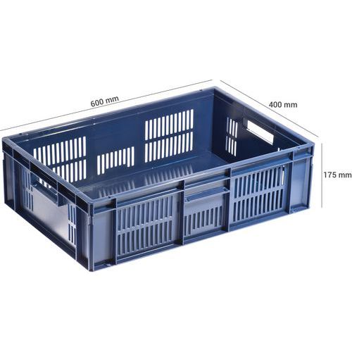 - Stohovatelné polypropylenové přepravky s plným dnem a perforovanými stěnami jsou kompatibilní s euro paletami.