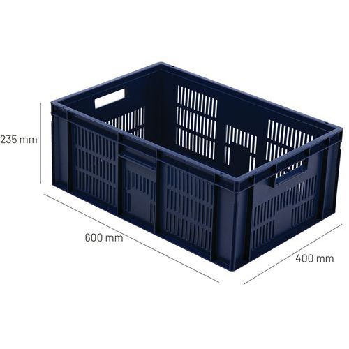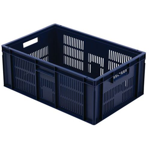 - Stohovatelné polypropylenové přepravky s plným dnem a perforovanými stěnami jsou kompatibilní s euro paletami.