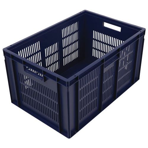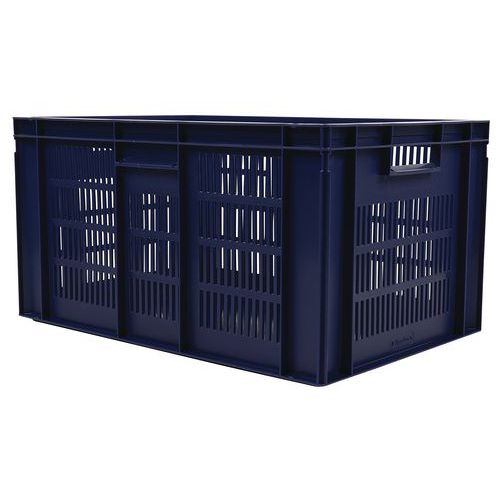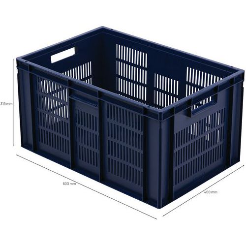 - Stohovatelné polypropylenové přepravky s plným dnem a perforovanými stěnami jsou kompatibilní s euro paletami.