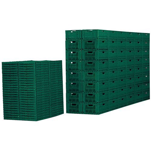 - Skládací přepravky, které lze stohovat a ukládat na palety se standardními evropskými výrobky.