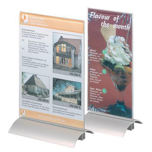 - Prezentační stojánky s jedním panelem mají všestranné využití, např. jako stojánek na jídelní a nápojový lístek nebo na nabídku cestovní kanceláře.