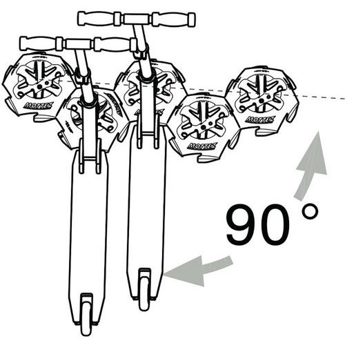 - Stojany na koloběžku lze připevnit k zemi pomocí otvoru na středové ose.