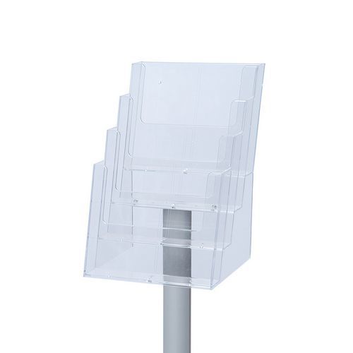 Stojany na brožury se stabilní hliníkovou konstrukcí. K prezentaci brožur slouží čtyři přihrádky z plexiskla. Šířka profilu 25 mm, dlouhá životnost stojanu. Vyrobeno v EU