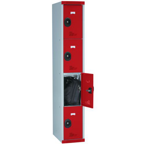 | Název produktu | Svařovaná šatní skříň Acial, 1 sloupec, 4 boxy, 300 mm, cylindrický zámek, šedá/červená |
