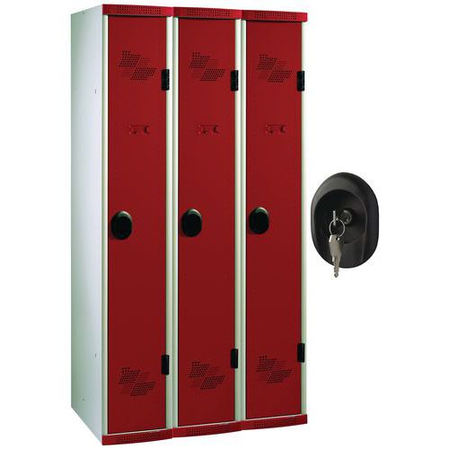 | Název produktu | Svařovaná šatní skříň Acial, 3 oddíly, 300 mm, cylindrický zámek, šedá/červená |
