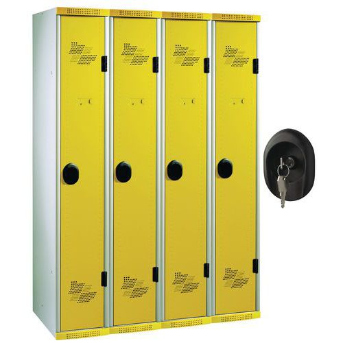 | Název produktu | Svařovaná šatní skříň Acial, 4 oddíly, 300 mm, cylindrický zámek, šedá/žlutá |