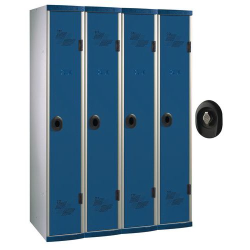 | Název produktu | Svařovaná šatní skříň Acial, 4 oddíly, 300 mm, otočný uzávěr, šedá/modrá |