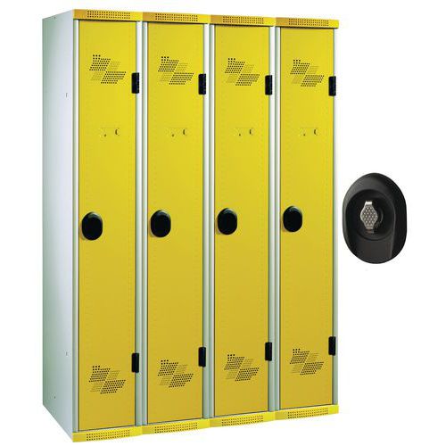 | Název produktu | Svařovaná šatní skříň Acial, 4 oddíly, 300 mm, otočný uzávěr, šedá/žlutá |