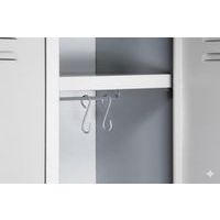 Svařované šatní skříně skládající se ze dvou samostatně uzamykatelných oddílů a s možností doplnění podstavnou lavičkou.