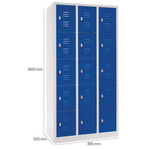 | Název produktu | Svařovaná šatní skříň Manutan Expert Anthony, 15 boxů, bez zámku, šedá/modrá |