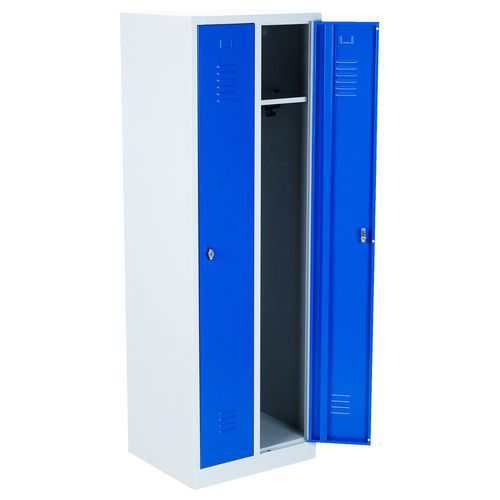 Svařovaná šatní skříň Manutan Expert DURO PROFI, 2 oddíly, šedá/modrá, cylindrický zámek Svařovaná šatní skříň Manutan Expert DURO PROFI, 2 oddíly, šedá/modrá, cylindrický zámek