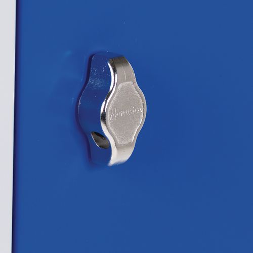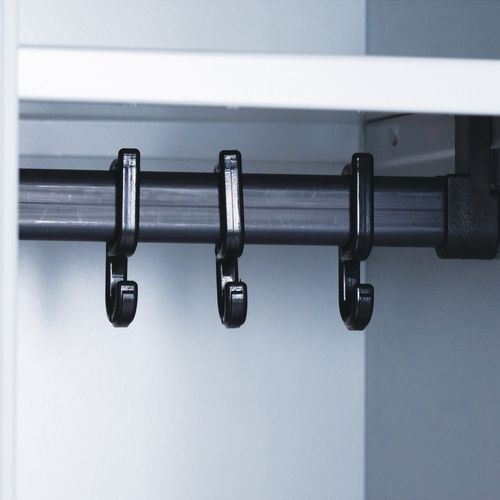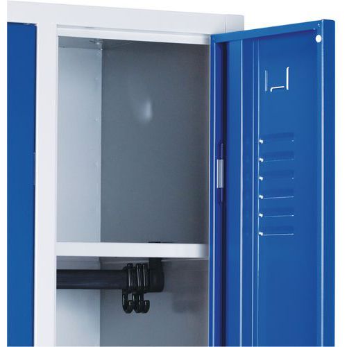 Svařované šatní skříně prémiové kvality skládající se ze dvou samostatně uzamykatelných oddílů. Bezpečnost zvyšuje zejména vyztužení dveří po celé délce, a to včetně rámu, a perforace dveří, kterými nelze pohlédnout dovnitř. Šatník z ocelového plechu tloušťky 0,7 mm. Účinné odvádění vlhkosti z oděvů větracími otvory na dveřích. Dveře jsou uloženy na vnitřních výsuvných pantech s možností otevření dveří až 180° a jsou opatřeny plastovými nárazníky pro snížení hluku při zavírání. Uzamykání otočným uzávěrem na visací zámek (lze dokoupit jako příslušenství) nebo cylindrickým zámkem na klíč. Možnost umístění štítku se jménem v horní části dveří. Na vyvýšeném rámu. Možnost dokoupení lavičky pod šatní skříň a šikmé stříšky. Bezpečnostní pokyny: Nábytek postavte na rovný a plochý povrch. Připevněte jej ke zdi nebo k příčce pomocí vhodného upevnění. Dbejte na správné rozmístění zátěže a nepřekračujte maximální povolené zatížení.