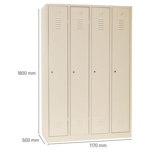 Svařovaná šatní skříň Manutan Expert DURO PROFI, 4 oddíly, béžová/béžová, cylindrický zámek Svařovaná šatní skříň Manutan Expert DURO PROFI, 4 oddíly, béžová/béžová, cylindrický zámek