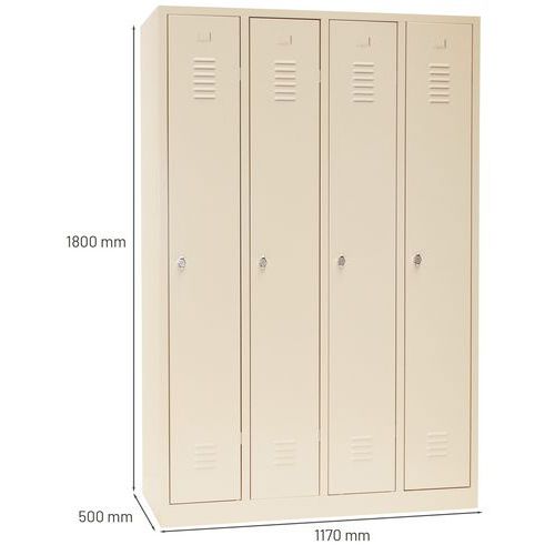 Svařovaná šatní skříň Manutan Expert DURO PROFI, 4 oddíly, béžová/béžová, otočný uzávěr Svařovaná šatní skříň Manutan Expert DURO PROFI, 4 oddíly, béžová/béžová, otočný uzávěr