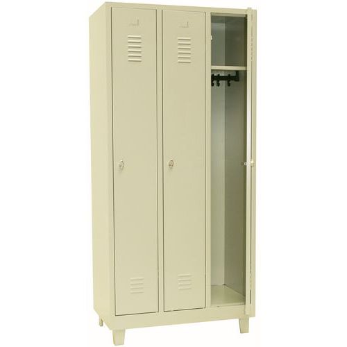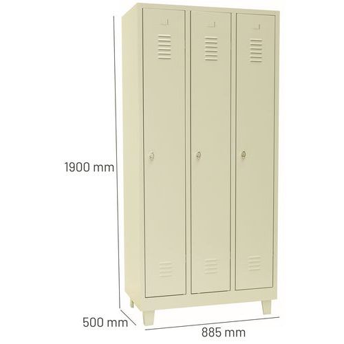 Svařovaná šatní skříň Manutan Expert DURO PROFI na nohách, 3 oddíly, béžová/béžová, otočný uzávěr