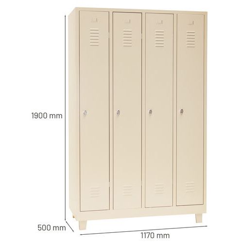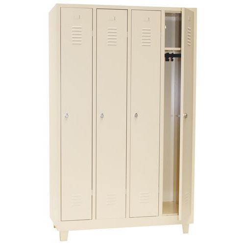 Svařovaná šatní skříň Manutan Expert DURO PROFI na nohách, 4 oddíly, béžová/béžová, otočný uzávěr