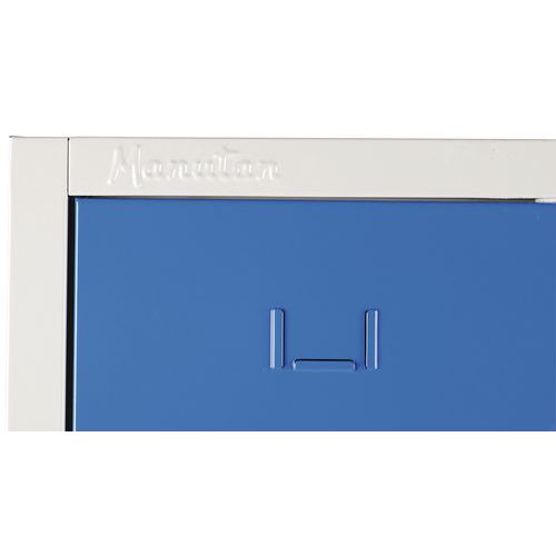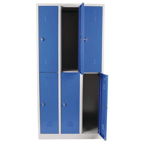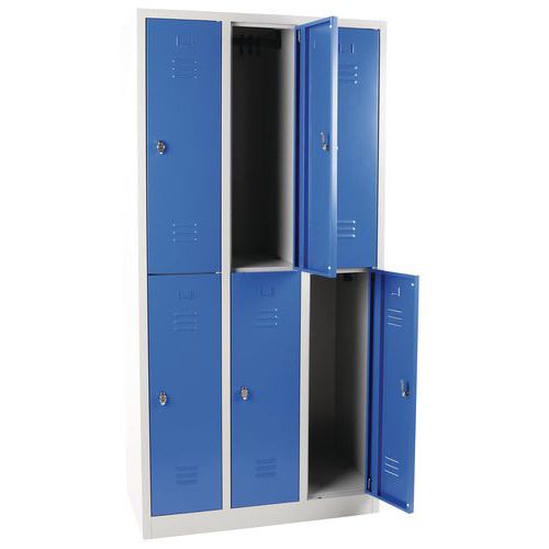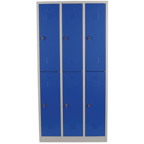 | Název produktu | Svařovaná šatní skříň Manutan Expert, 6 oddílů, na soklu, bez zámku, šedá/modrá |