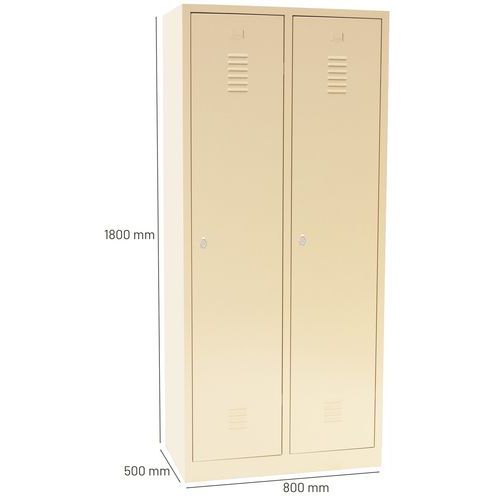 Svařovaná šatní skříň s mezistěnou, 2 oddíly, béžová/béžová, otočný uzávěr - Manutan Expert DURO PROFI