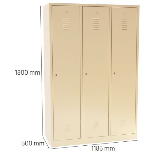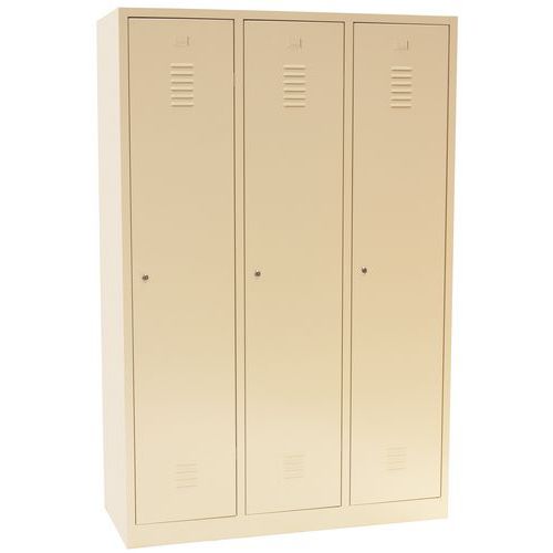 Svařovaná šatní skříň s mezistěnou Manutan Expert DURO PROFI, 3 oddíly, béžová/béžová, cylindrický zámek