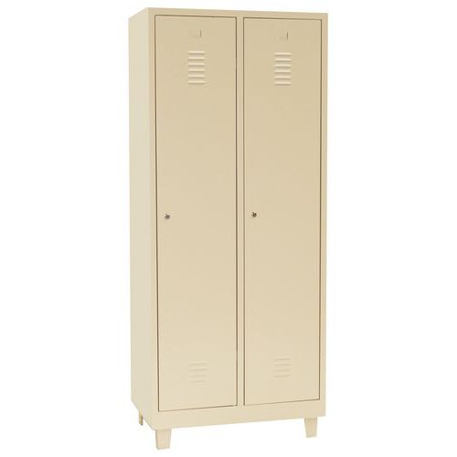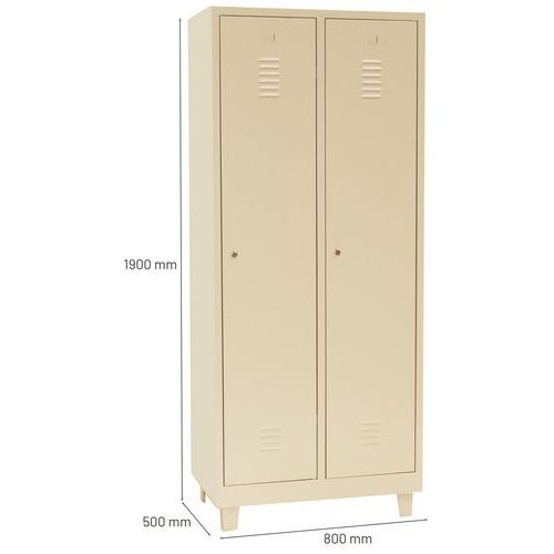 Svařovaná šatní skříň s mezistěnou Manutan Expert DURO PROFI na nohách, 2 oddíly, béžová/béžová